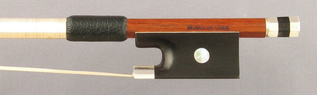 A silver mounted violin bow by Reid Hudson